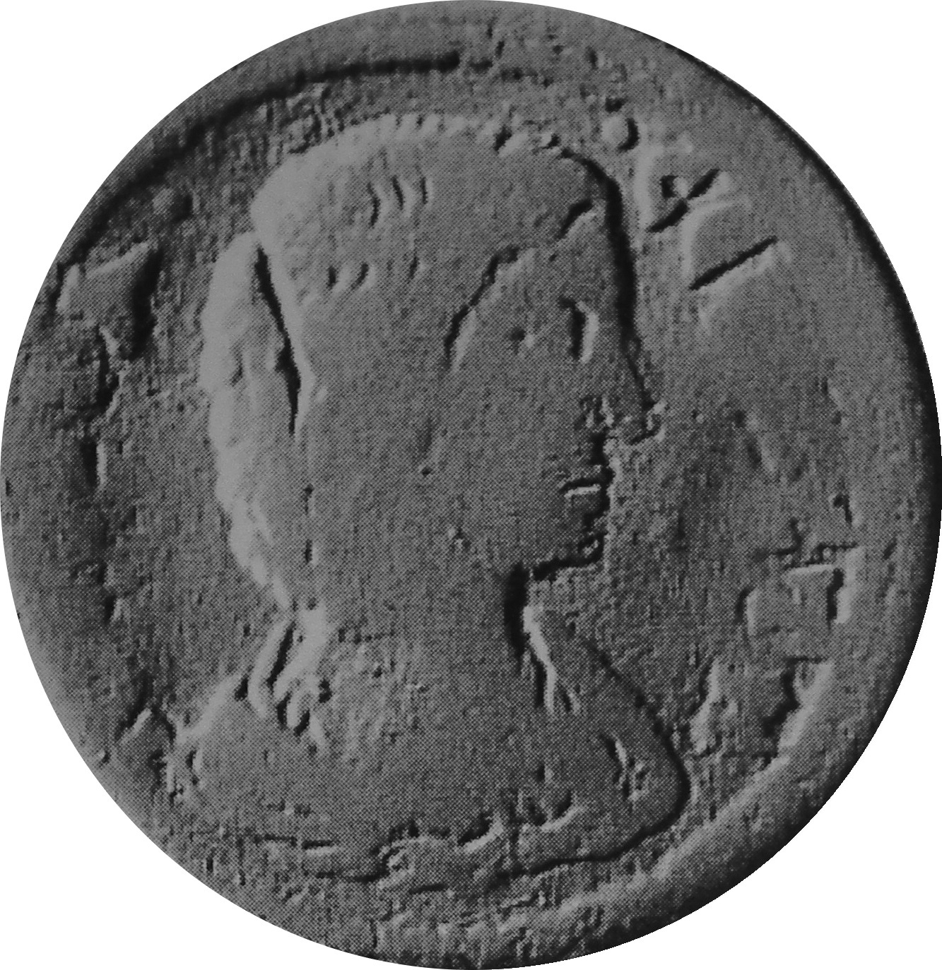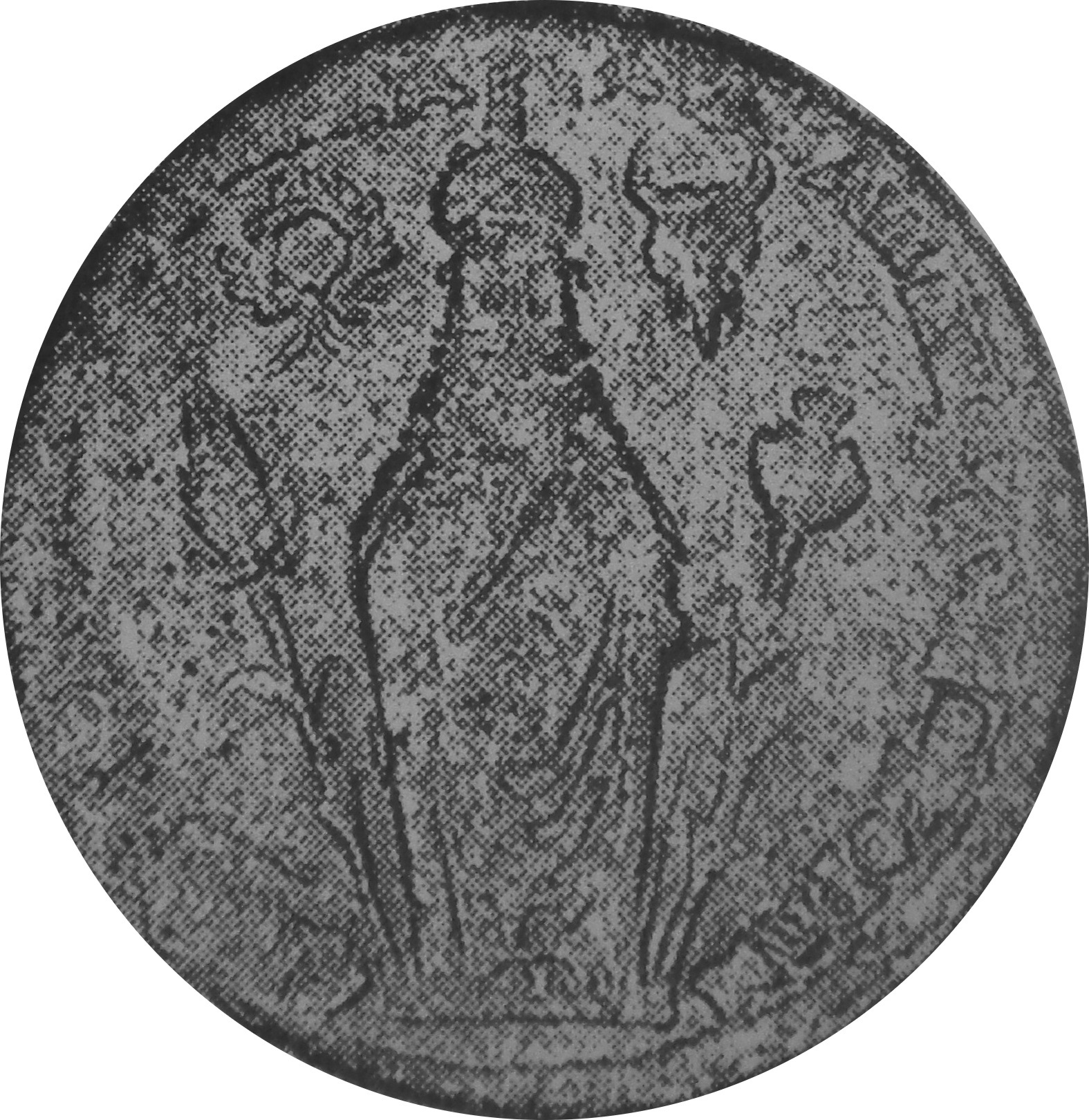 Kore of Sardis, between ear of corn and poppy; above, wreath and bucranium |