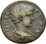 eagle facing on garlanded altar, head left between two aquilae on the shaft of which, circular shield; on top of each aquila, capricorn