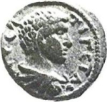bare-headed, draped and cuirassed bust of Geta, right, seen from rear