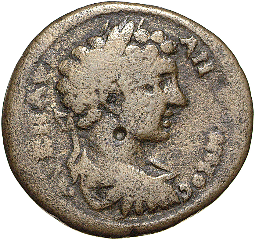 laureate, draped and cuirassed bust of Caracalla, seen from rear