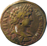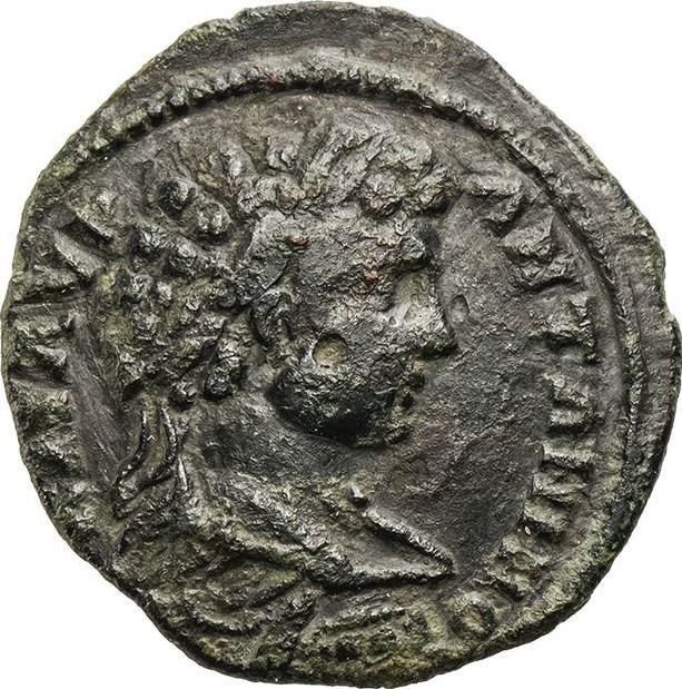 laureate, draped and cuirassed bust of Caracalla, right, seen from rear