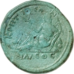 river god Billaios reclining left, holding ears of corn in his right hand and reed on left arm resting on pile of rocks