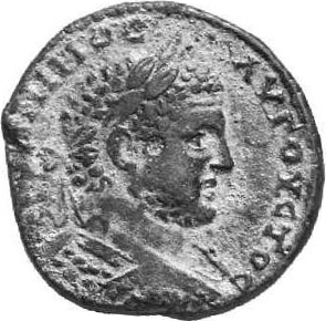 laureate and cuirassed bust of Caracalla, right, seen from rear