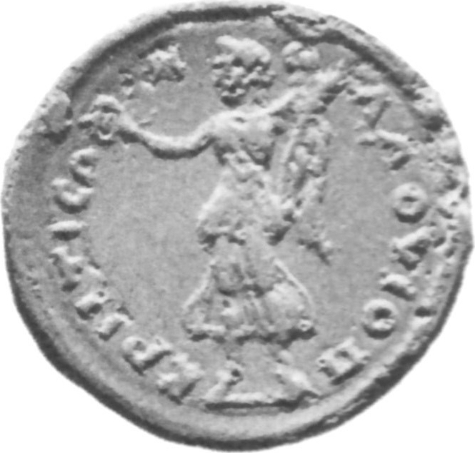 Nike advancing left holding wreath and palm