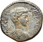 bare-headed and cuirassed bust of Geta, right, seen from front