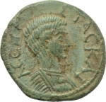 bare-headed and cuirassed bust of Geta, right, seen from front
