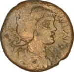 bare-headed, draped and cuirassed bust of Geta, right, seen from rear