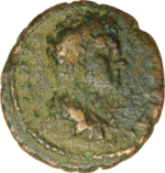 bare-headed, draped and cuirassed bust of Geta, right, seen from rear