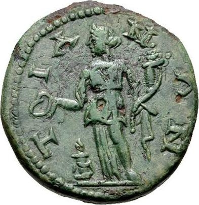 Homonoia (?) standing left, holding patera in right hand over lighted altar and cornucopia in left