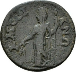 Demeter standing left, holding ears of corn and long torch
