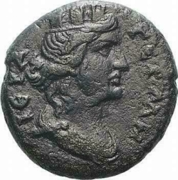 turreted and draped bust of the Tyche, right