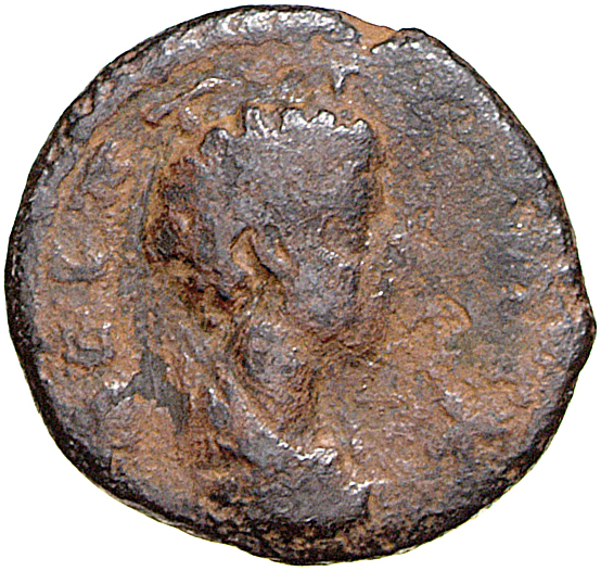 bare-headed, draped and cuirassed bust of Geta, right, seen from rear