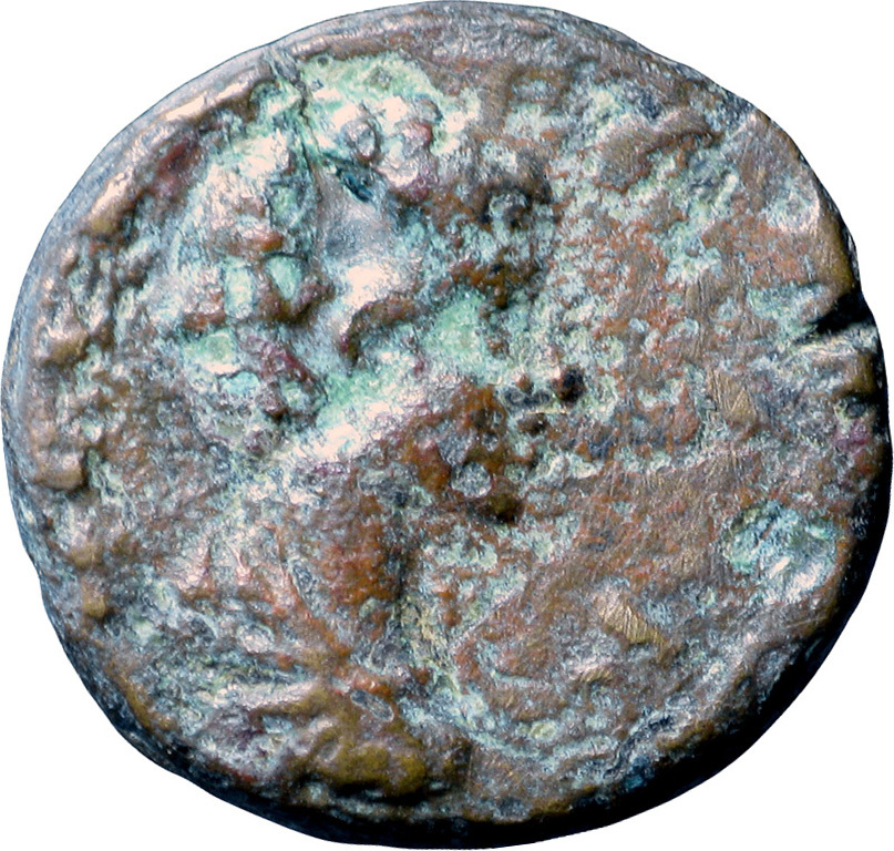 bare-headed, draped and cuirassed bust of Geta, right, seen from rear
