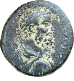 laureate and draped bust of Septimius Severus, right, seen from rear