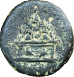 Mount Argaeus on tall altar, decorated with two birds, holding wreath