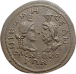 confronted busts of Sarapis wearing kalathos and Isis wearing basileion