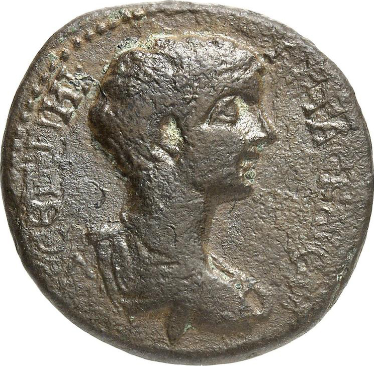 bare-headed, draped and cuirassed bust of Geta, right, seen from rear