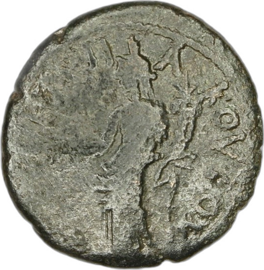 Tyche standing left, holding branch and cornucopia