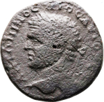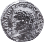 laureate head of Caracalla, left