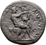 Apollo seated right, playing lyre