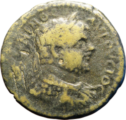 laureate and cuirassed bust of Caracalla, right, seen from rear