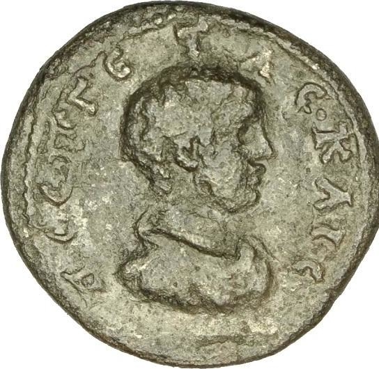 bare-headed and draped bust of Geta, right, seen from front