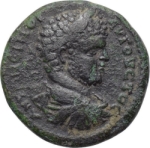 laureate, draped and cuirassed bust of Caracalla, right, seen from rear
