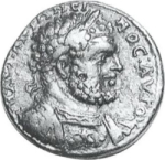 laureate and cuirassed bust of Caracalla, right, seen from front