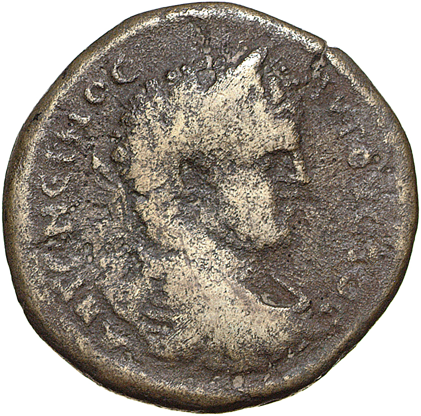 laureate, draped and cuirassed bust of Caracalla, right, seen from rear