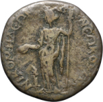 Demeter standing facing, head left, holding patera in her right hand over lighted altar, her left resting on torch