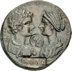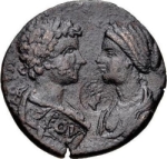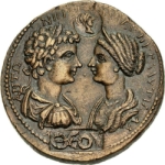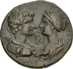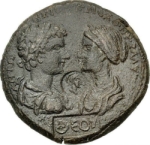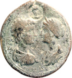 GIC 188 (Athena (or Roma)?, helmeted head r.); GIC 536 (ΘΕΟΥ) ; perforated coin and double struck on rev.