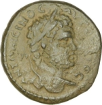 Asclepius standing facing, head left, his right hand resting on serpent-staff