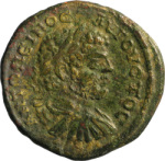 laureate, draped and cuirassed bust of Caracalla, right, seen from rear