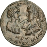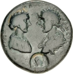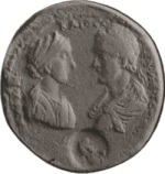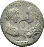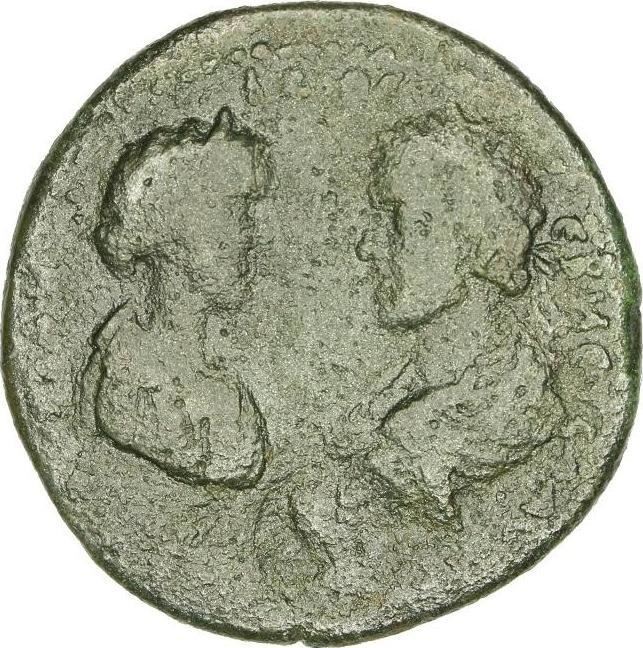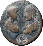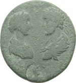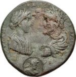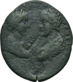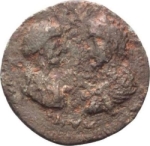 GIC 188 (Athena (or Roma)?, helmeted head r.); GIC 536 (ΘΕΟΥ) ; Double struck on obv.
