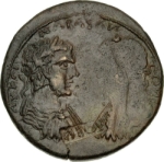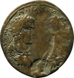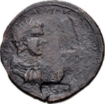 GIC 188 (Athena (or Roma)?, helmeted head r.); GIC 536 (ΘΕΟΥ) ; double struck on rev. ; Geta erased