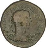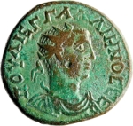 radiate, draped and cuirassed bust of Gallienus, right, seen from front