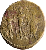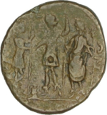 Valerian in military dress standing left, holding sceptre and extending right to Gallienus standing left holding spear; to right, togate male (Saloninus?) standing left, (holding baton?); (at feet, altar)