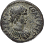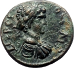 laureate and draped bust of Geta, right, seen from rear