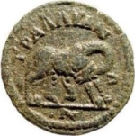she-wolf right, suckling the twins, head turned back