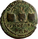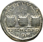 confronted laureate, draped and cuirassed busts of Valerian and Gallienus; between, bare-headed, draped and cuirassed bust of Valerian II, right |