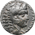 head of Alexander the Great, wearing lion skin, right