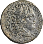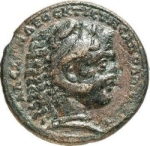 head of Alexander the Great, wearing lion skin, right