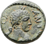 laureate, draped and cuirassed bust of Caracalla or Elagabalus, right, seen from front