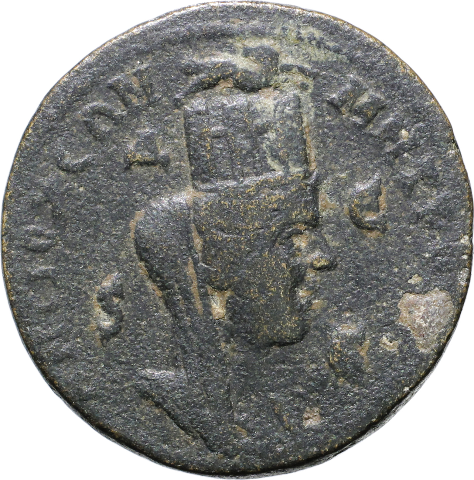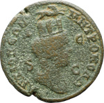 veiled, turreted and draped bust of Tyche, right; above, ram leaping right, head left |
