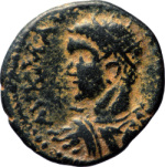 diademed and draped bust of the moon god Sin, right, crescent behind shoulders, wearing crescent on forehead