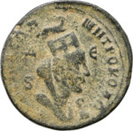 veiled, turreted and draped bust of Tyche, right; above, ram leaping right, head left; (below, star) |