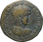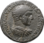 draped bust of Diadumenian (bare-headed), right, seen from rear