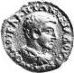 draped bust of Diadumenian (bare-headed), right, seen from rear