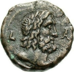 Reverse design Zeus, laureate, right, with drapery on left shoulder