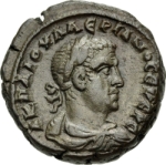 laureate, draped and cuirassed bust of Valerian, right, seen from rear |